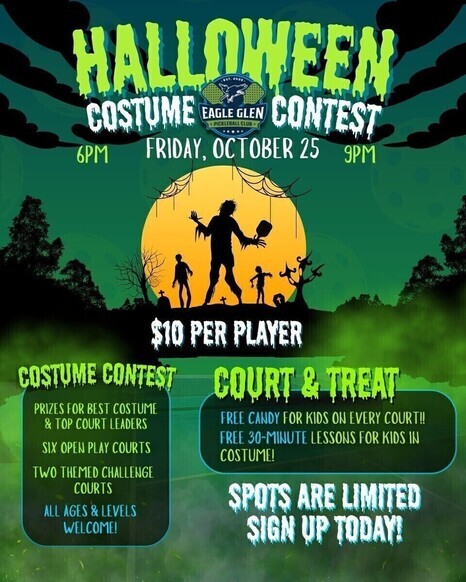 π² Download the Eagle Glen Pickleball App for full details and to join the Halloween fun.